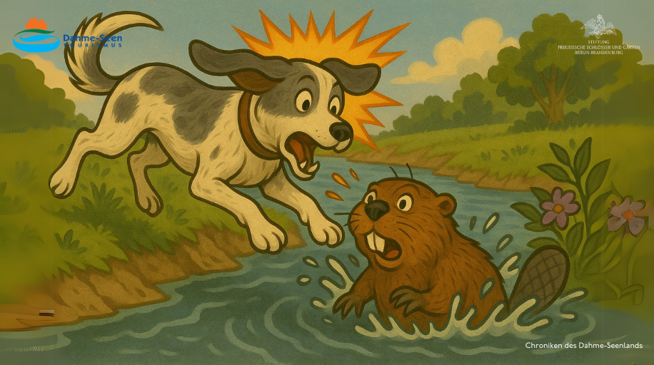 Doch statt einer magischen Nixe landete Jule auf etwas mit weichem Fell. „Huch! Jule, bist du verrückt?“ schimpfte eine bekannte Stimme. Jule blinzelte verwirrt – vor ihr saß Berta, die Biberin, und schüttelte sich das Wasser aus dem Fell. „Was soll das denn?“ fragte Berta verwundert. Jule schaute auf Bertas breite, flache Schwanzflosse und verstand. Es war nicht die magisch schimmernde Schwanzfloss der Flussnixe, die Jule gesehen hat, sondern die von Berta.