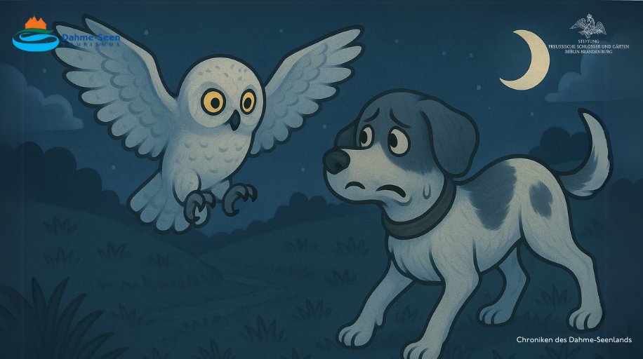 Die Sonne ging gerade unter, und eine kühle Brise zog durch den Schlossgarten von Königs Wusterhausen. Jagdhündin Jule genoss ihren abendlichen Rundgang. Die Luft roch nach feuchtem Gras, und in der Ferne hörte sie das sanfte Plätschern des Mühlenfließes. Bald würde es ganz dunkel sein, also machte sie sich auf den Rückweg zum Schloss.